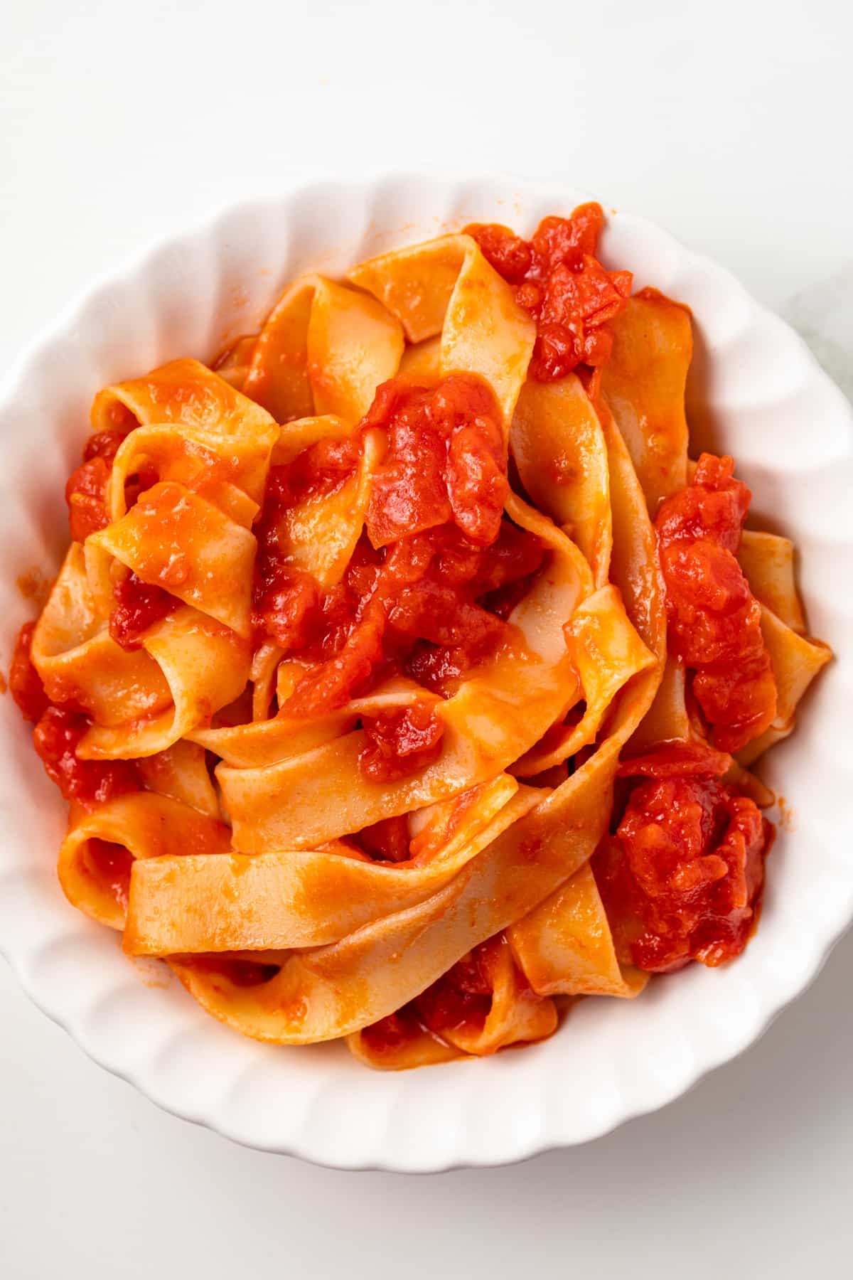 I absolutely love pasta with tomato sauce, but let’s be real, it can be pretty time-consuming to make the sauce from scratch. It takes time for flavors to develop.